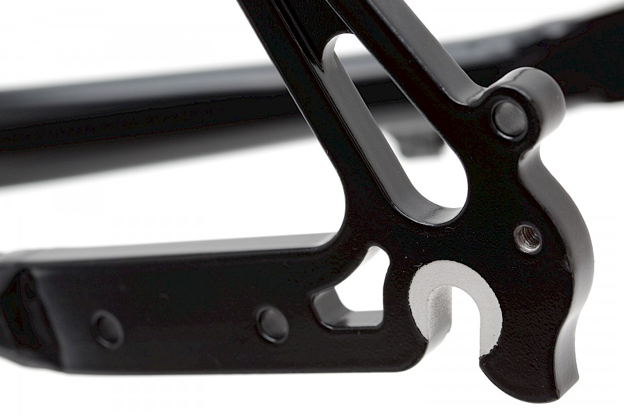 Die möglichen Laufradgrößen sind 26 und 27,5 Zoll, und als Bremse stehen ausschließlich Scheibenbremsen zur Wahl. Der Rahmen hat alle Voraussetzungen, um Schutzbleche und Gepäckträger vorne wie hinten zu montieren. Unscheinbar und von elementarer Bedeutung sind dafür die optimal platzierten Gewinde und Querstege.