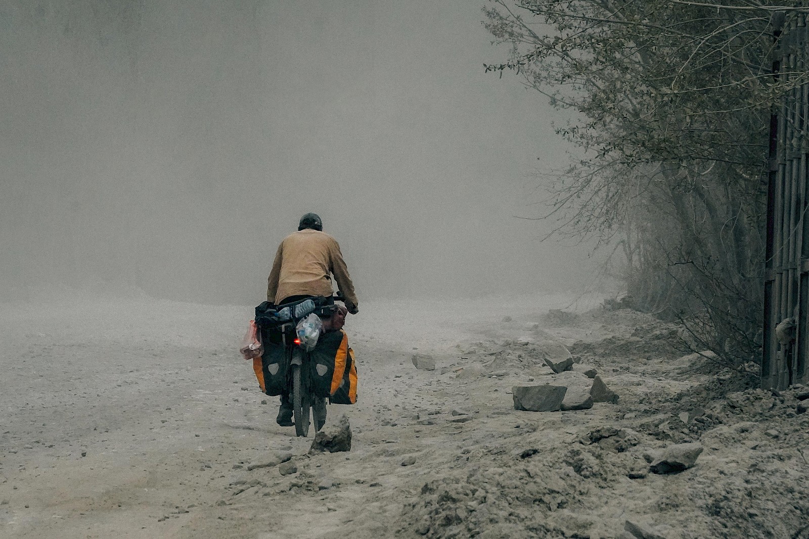 Einsam in der Wüste? Im Gegenteil. Velotraum-Markenbotschafter Jakob Tepler erregt die Aufmerksamkeit der einheimischen Bevölkerung und der Taliban, wo immer er sich aufhält.