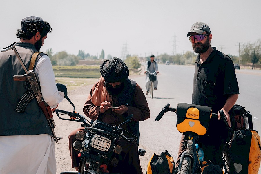Zu den Begegnungen mit der Bevölkerung kommen täglich mehrere Taliban-Checkpoints dazu. Die Fragen ähneln sich. Ein wesentlicher Unterschied: Die Taliban haben meist ein Maschinengewehr über der Schulter hängen und sind weniger gebildet. Probleme bekomme ich an diesen Checkpoints nicht. Die Taliban-Regierung möchte international anerkannt werden, freut sich über Touristen und behandelt diese entsprechend gut. Sind die Taliban deshalb meine Freunde? Nein.