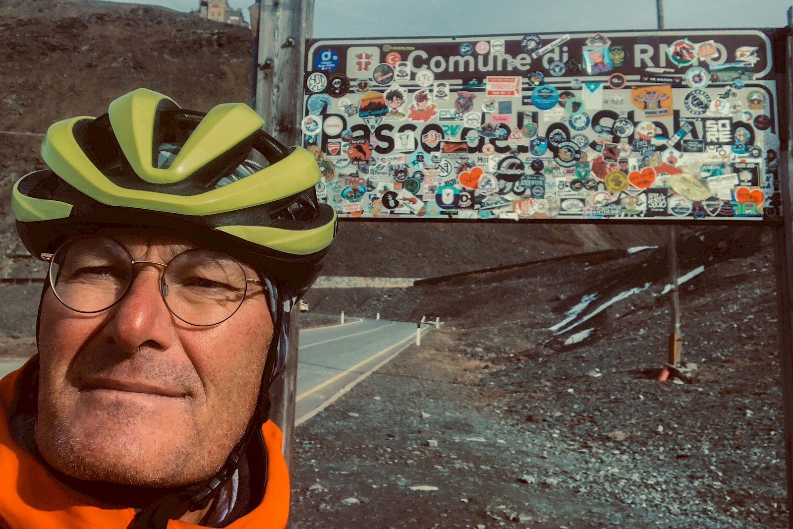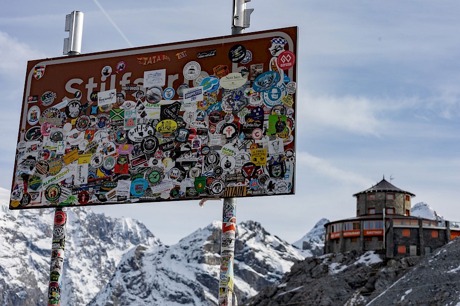 Auf zirka 2.100 Meter Höhe war es dann soweit, der erste Akku war leer. Damit hatte ich auch ganz grob gerechnet, also alles im grünen Bereich. 400 Höhenmeter weiter oben erreichte ich schließlich den völlig leeren und unspektakulären Umbrail-Pass. Zu meinem Erstauen war der Umbrail mehr ein Bergsattel als ein Pass, dafür war das Stilfser Joch quasi in Griffweite. Um dort hinzukommen musste ich noch nicht mal eine Zwischenabfahrt meistern, sondern nur noch 250 Höhenmeter weiter hinauf. Der Akku zeigte noch solide vier Ladebalken und das Wetter schien weiter stabil zu bleiben, also blieb mir gar nichts anderes übrig als auch noch den Stelvio zu »bezwingen« ;-)