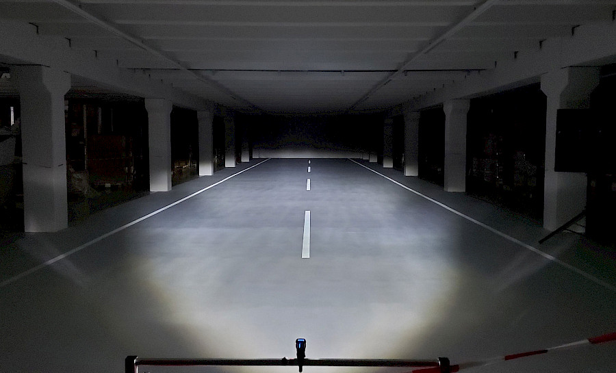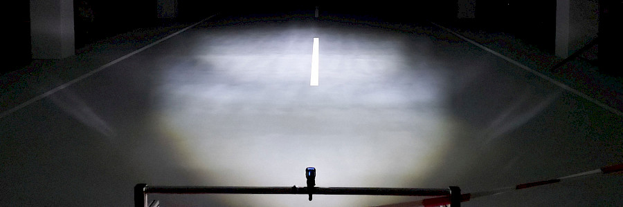 Am Pedelec nutze ich seit zwei Winter den IXON Space als zusätzliches Fernlicht für Wald / Feldwege. Blendfrei eingestellt ist er locker bei 50 Meter Ausleuchtung. Als ich den Test am Wochenende las, war ich ziemlich irritiert, warum die Stiftung Warentest ihn so einstellt, dass es einen weißen Fleck am Boden gibt.