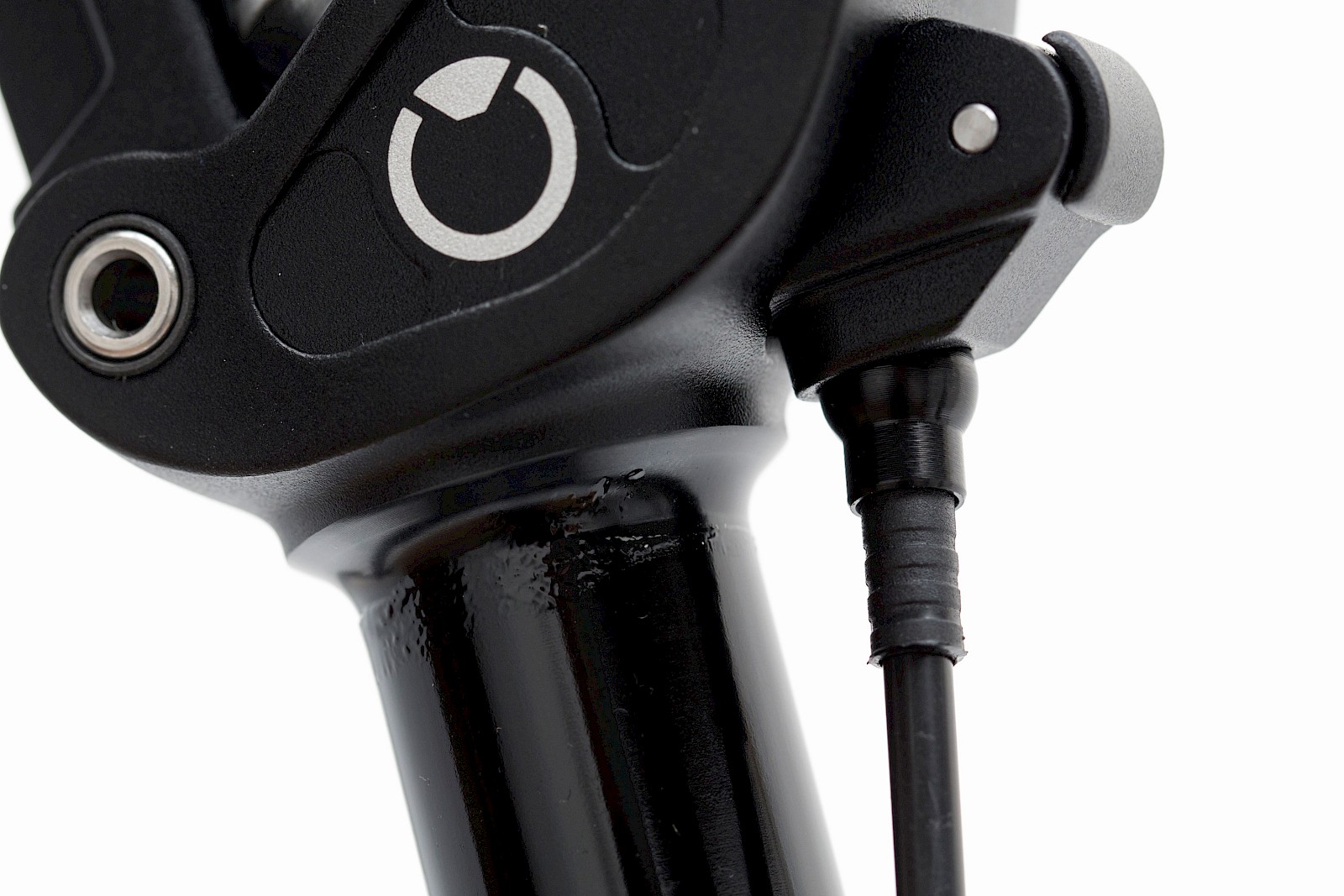 Sobald man den Bedienungshebel kräftig nach vorne gedrückt hält, öffnet sich das Ventil der Gasdruckfeder im Inneren der Stütze und der Sattel – samt Fahrer – senkt sich ab. Dabei ist der Grad der Absenkung quasi stufenlos einstellbar, bis der als Elastomer dienende Endanschlag nach zirka 80 Millimeter erreicht ist. Zum Ausfahren der Stütze muss der Hebel wiederum nach vorne gedrückt werden, und die Stütze fährt sanft bis in Endposition nach oben. Im ersten Moment gewöhnungsbedürftig ist der Umstand, dass man den Bedienungshebel relativ kräftig gedrückt halten muss, bis die Stütze in der gewünschten Position angekommen ist, es gibt also keine Rasterung. Ach ja, um allen Missverständnissen vorzubeugen: Zum Absenken nutzt man das Körpergewicht, zum Ausfahren freilich nicht ;-)