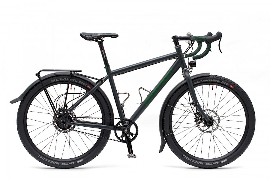 bei der Rohloff Nabe ist noch die Tune Momentum Achsplatte vebaut und fast alle Schrauben am Rad sind aus Titan.