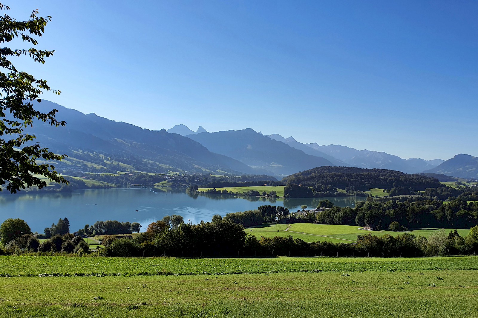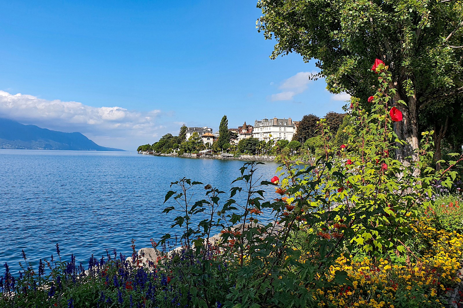 Von Andermatt ging es über den langen Furkapass ins Rhonetal im Wallis. Eigentlich ist es keine gute Idee das Tal von Ost nach West zu durchfahren, denn hier bläst fast immer ein sehr kräftiger Westwind. Am Morgen ist es meist noch windstill, über den Tag wird der Wind dann immer kräftiger, das macht besonders mit den Packtaschen keinen großen Spaß. Im letzten Jahr sind wir auf einer Herbsttour durch die Rebberge in der Höhe gefahren, dieses Mal wollten wir es ja etwas gemütlicher und haben die Route im Tal gewählt. Weiter ging es bis zum Genfer See, wir fuhren ein kleines Stück daran entlang, sehr nett der sehr hübsch bepflanzter Uferweg bei Montreux. Dort sind wir dann in Richtung Lac de Gruyère abgebogen und über Fribourg nach Bern gefahren. Auf jeden Fall hat uns der Tapetenwechsel gut getan.