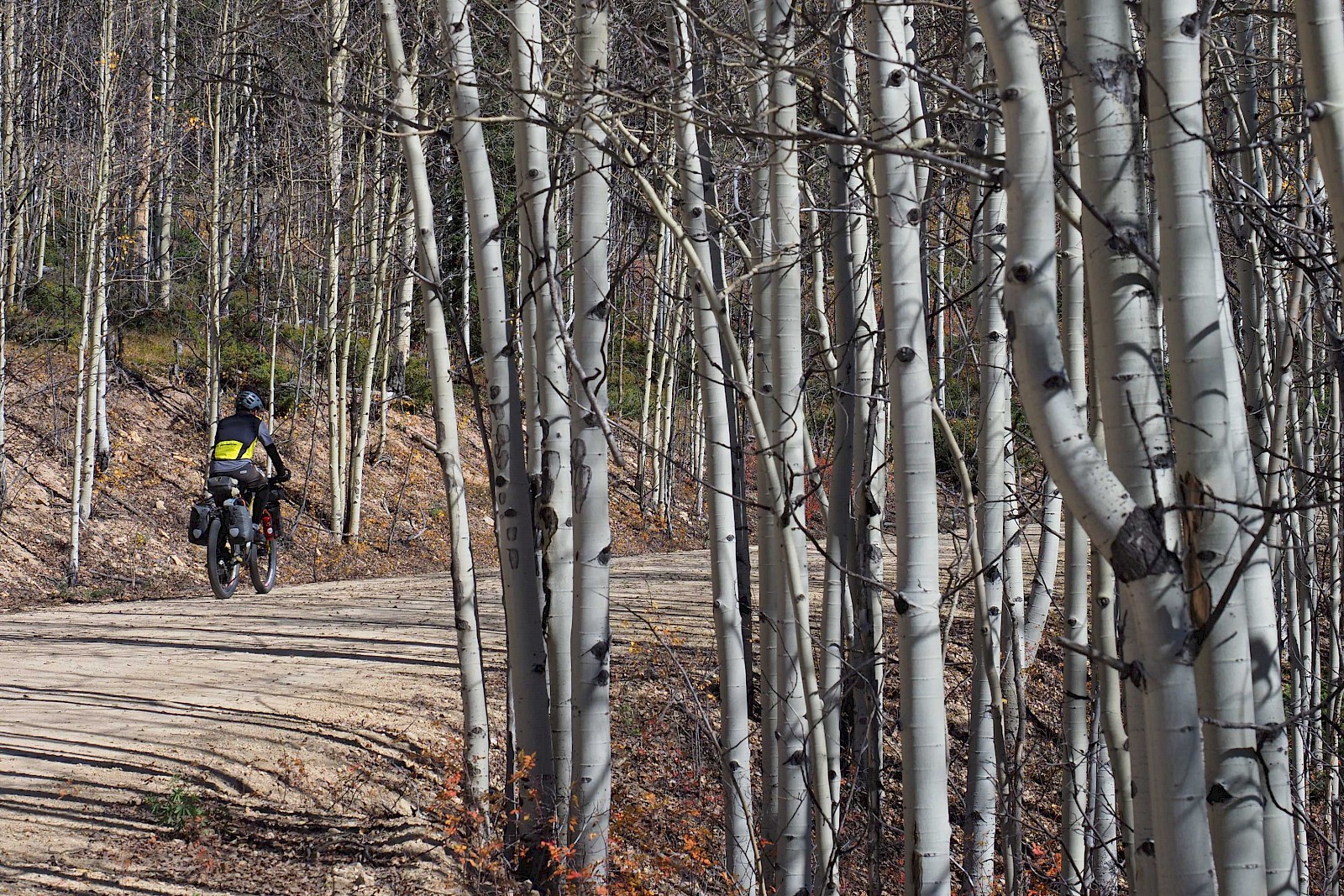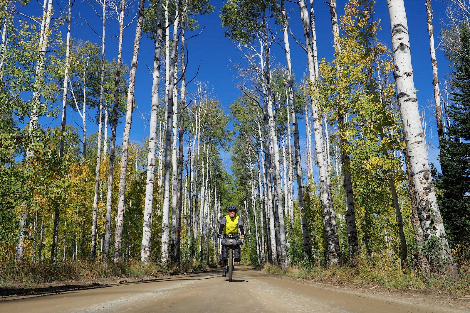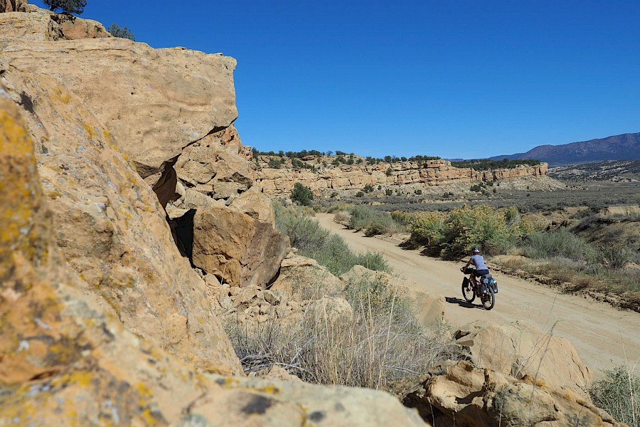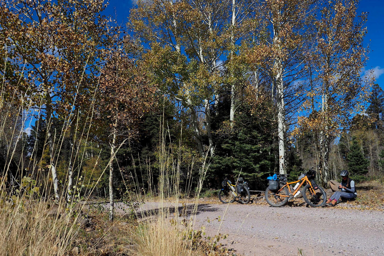 Nach einigen spektakulären Passüberquerungen bei 30 Zentimeter Neuschnee und klirrend kalten Nächten mit gefrorenen Wasserflaschen, stellt sich langsam aber sicher wieder stabileres Wetter ein. Wir erleben einen grandiosen „Goldenen Herbst“ in Colorado und meistern extrem anspruchsvolle und einsame Passagen im Norden New Mexicos. Hier bewähren sich unsere Räder so gut, dass wir manchmal sogar ausgewachsene Geländewägen auf verblockten Felspassagen bergab überholen! „Awesome“, würde ein echter Ami sagen!