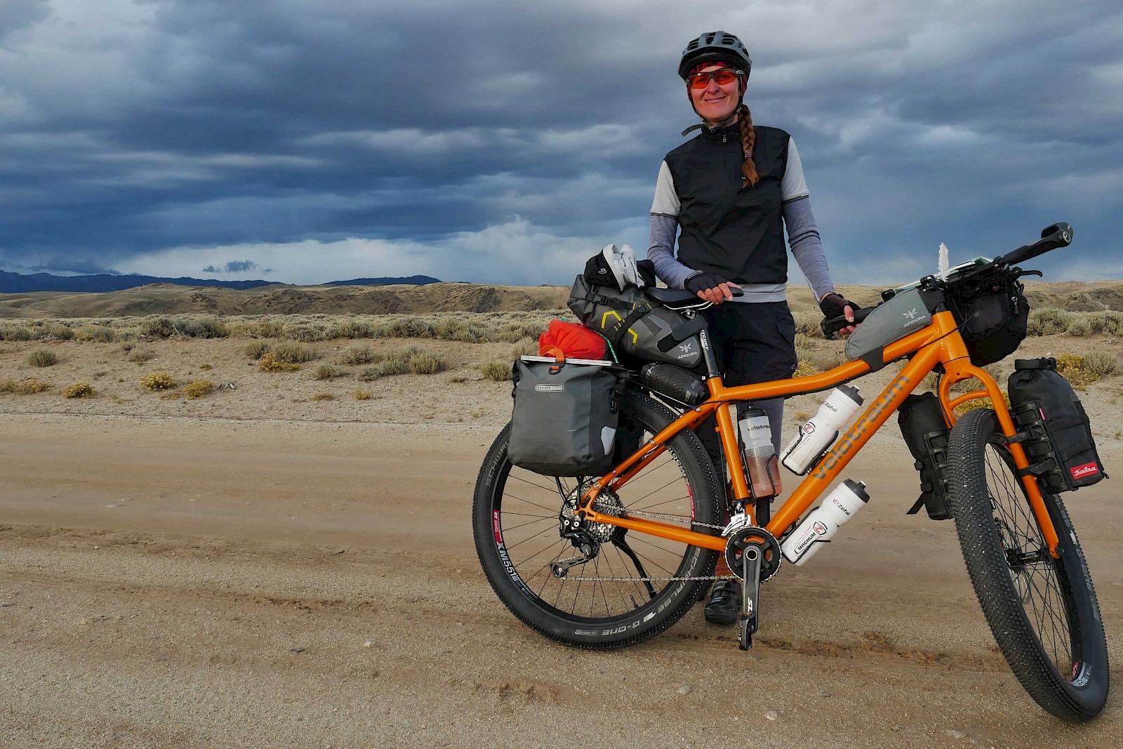 Etwa 90 % der „Great Divide MTB-Route“ verlaufen auf Schotterwegen und Trails bis in Höhen von fast 4.000 Metern. Deshalb wollten wir mit Rädern unterwegs sein, die auch abseits der Asphaltstraßen richtig Spaß machen und uns einen guten Kompromiss aus Fahrkomfort und Leichtlauf bieten. Unsere alten, klassischen 26-Zoll Weltreise-Tourer wären mit dem zu erwartenden Terrain ziemlich überfordert gewesen! Deshalb machten wir uns auf die Suche – und wurden bei VELOTRAUM rasch fündig. Vom Konzept des FINDER waren wir von Beginn an begeistert. Uns überzeugte die 27,5-Zoll-Plus Bereifung, eine sportlich-komfortable Rahmengeometrie und jede Menge Ösen und Gewinde zur Befestigung von Gepäckträgern, Flaschenhaltern und anderen Befestigungs-Systemen. Nach einer ersten Probefahrt stand fest: Der FINDER ist die erste Wahl für unser Vorhaben!