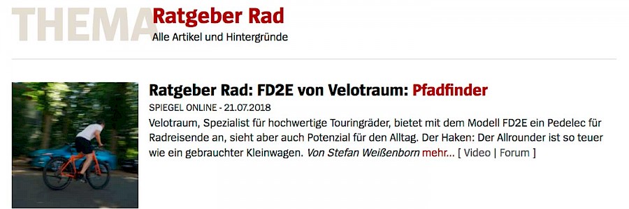 Wow! Ein ausführlicher Fahrbericht über den Finder FD2E in der Spiegel-Online-Rubrik »Radgeber Rad«.