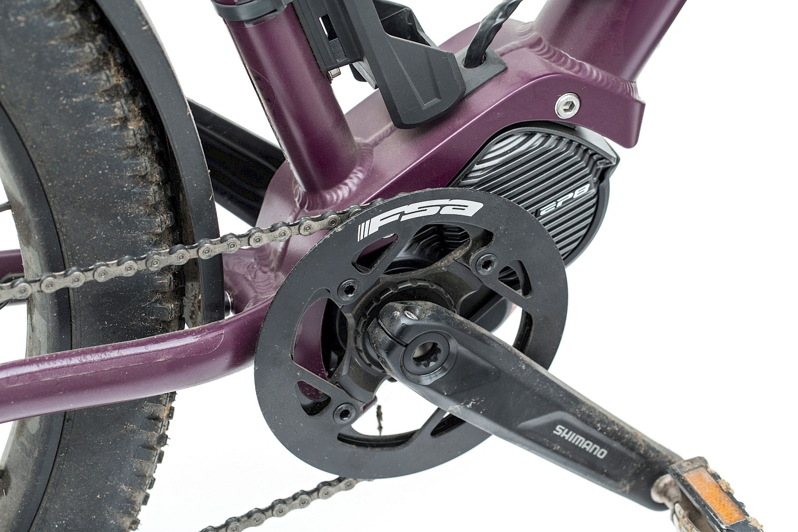 Wohl überlegt war auch die Entscheidung für den »alten« FD100E-Rahmen mit aufgesetztem Akku. Ausschlag gebend dafür waren sowohl die Verfügbarkeit als auch die klassische Rahmenoptik. Als Laufradsatz kommt eine Kombination aus WTB-Felgen und 2,8-Zoll WTB-Reifen zum Einsatz und zwar in 26-Zoll Laufradgröße. Die somit geringere Überstandshöhe kommt insbesondere Moritz’ Frau Ina zugute. Da extreme Berggänge weder gewünscht noch benötigt werden, hat Moritz eine Kassette mit 11-34 Zähnen und ein Rennradschaltwerk mit kurzem Käfig verbaut.