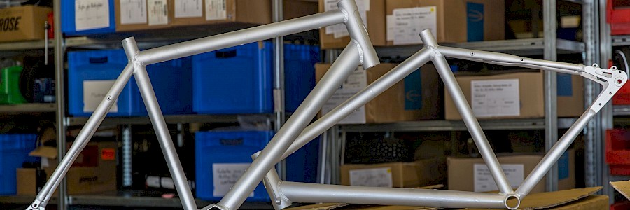 Leider konnten wir nur ein winziges Kontingent der Flugfrachtplätze ergattern (Rest kommt mit dem Schiff), aber immerhin. Den neuen VT100-Rahmen haben wir bereits ausführlich vorgestellt. Für den VT1300-Pinion-Rahmen werden wir das nachholen, sobald ein neues Ausstellungsrad zur Verfügung steht.