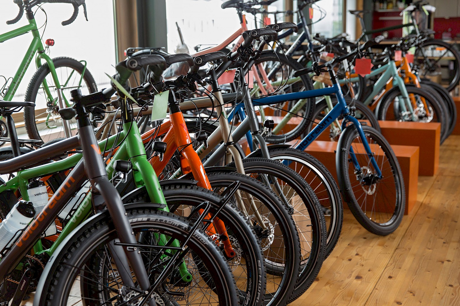 Drangvolle Enge herrscht auch auf der Galerie unseres Firmengebäudes, hier (und im Lager) warten fast fertige Kunden-Fahrräder auf einen Umwerfer, Schaltwerk, usw. … Kurzum – wir versuchen unablässig das Beste aus der vermaledaiten Situation zu machen :-)