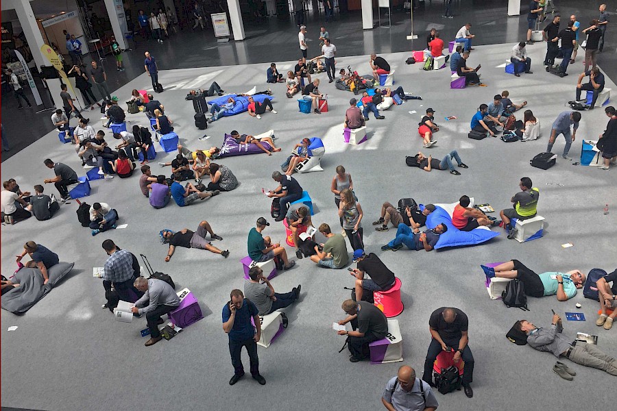 Schon nach dem ersten Tag (ein Sonntag) sahen wir uns in der Entscheidung bestätigt, auf einen eigenen Messestand verzichtet und lediglich einen Besprechungstisch in der VSF-Lounge gebucht zu haben. Ebenfalls eine glückliche Entscheidung: unser »Quartier« auf dem liebevoll geführten Campingplatz Ferienhof Kramer. Was für ein schöner Ausgleich am Abend, nach Verlassen der abgedrehten Messe-Bubble ins geerdete Familien-Camping-Leben einzutauchen ;-)