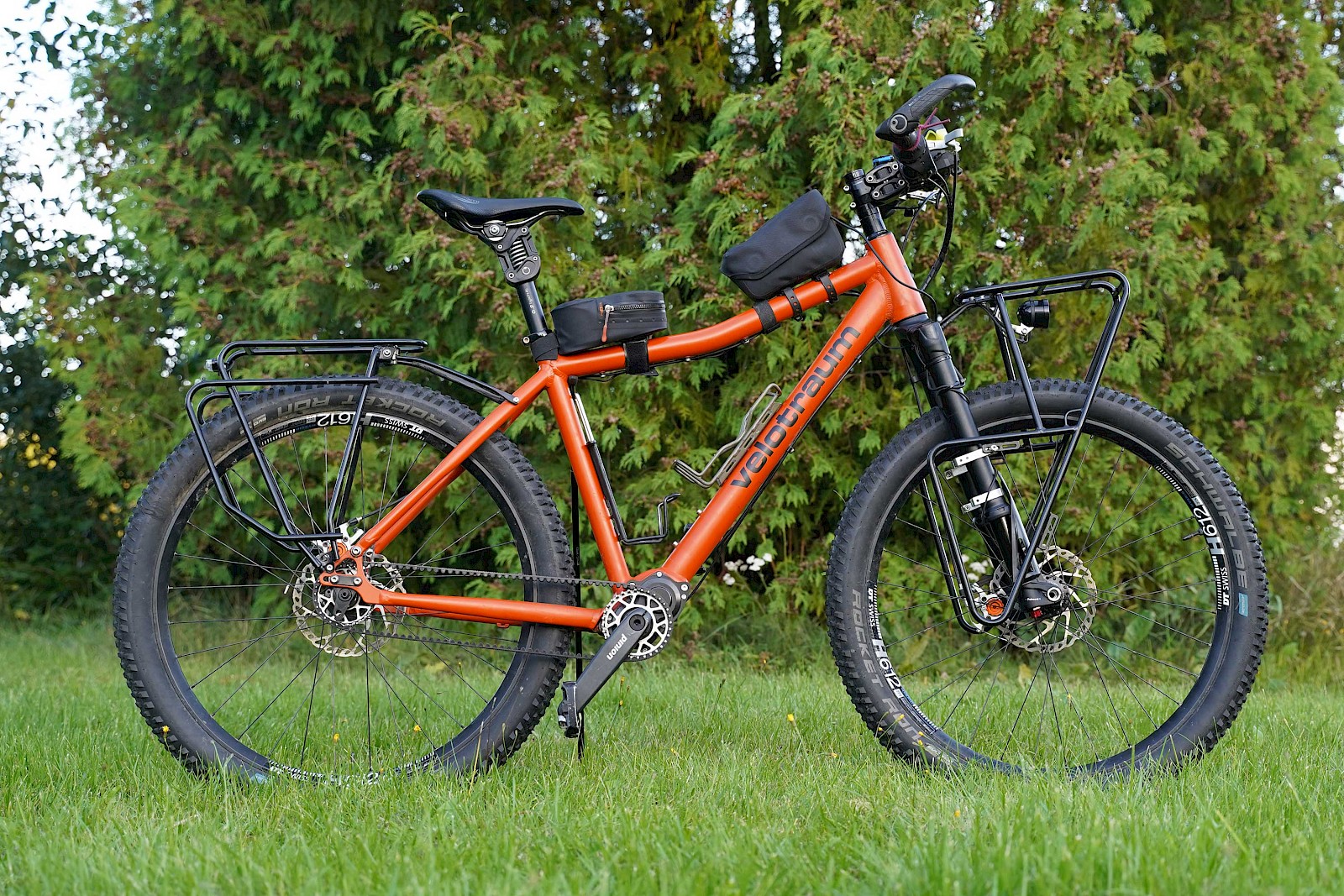 - Gepäckträgerbefestigung – Mit zwei speziell entwickelten Haltern können sowohl Anything-Cages wie Frontgepäckträger montiert werden.
