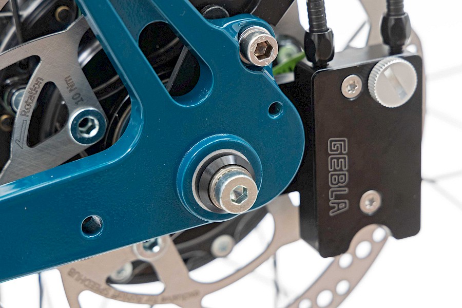 Gut, dass Moritz Pfrengle technische Herausforderungen nie abschrecken, sondern eher herausfordern. Denn natürlich wollten wir das Rad nicht auf Basis des Auslaufmodells SP200 bauen. So blieb nur der neue Speedster S100-Rahmen mit seinen vielen Vorteilen, aber einem vermeintlich Rohloff-spezifischen Nachteil: der Steckachse. Aus diesem Grund haben wir bisher einen großen Bogen um die vergleichsweise filigrane und adapterintensive Rohloff mit Steckachse gemacht. Um es kurz zu machen: Ja, die Rohloff stammt aus der Schnellspanner-Ära und die Steckachse muss mit einigem Aufwand integriert werden, ist aber durchaus machbar und handhabbar. Für den Nutzer sind diese Aspekte zudem völlig irrelevant, der kann sich allein an der wartungsarmen und robusten Rohloff erfreuen.