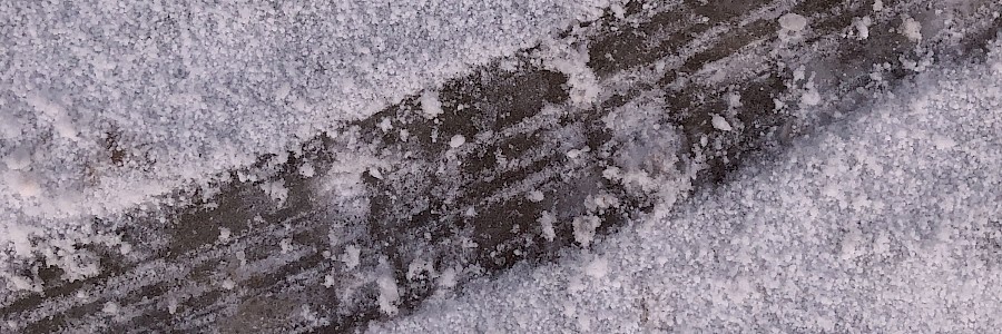 Sobald der Schnee erreicht ist, ändert sich das Bild. Hier verhält sich der Ice-Spiker völlig normal, außer, dass man Griff ohne Ende hat. Anfangs bin ich noch etwas skeptisch und vorsichtig, mit jedem Brems- und Lenkmanöver steigt jedoch das Zutrauen in die 700 Wolframcarbid-Krallen. Ganz bewusst wähle ich bekannt-problematische Strecken und versuche mich an die Grenzen der Reifen heranzutesten, was mir nicht gelungen ist. Allerdings waren die Bedingungen noch nicht extrem, die kommen erst nächste Woche, wenn auf strengen Frost ein mildes Niederschlagstief folgt. Mit dem Ice-Spiker kann man sich da fast schon drauf freuen ;-)
