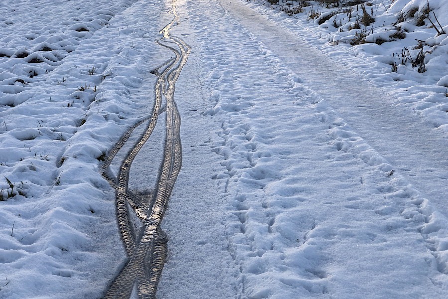Auf vielbefahrenen Feldwegen, wo festgefahrener Schnee sich gerade in Eisplatten voller Spurrinen verwandelt, will ich nichts anderes mehr fahren.