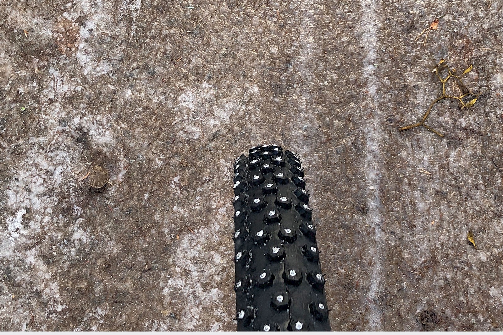 Noch ein paar Worte zu den Asphalteigenschaften, die natürlich recht bescheiden sind. Der Reifen fährt sich leicht kippelig und eiert etwas durch die Kurven. Bei der üppigen Stollenhöhe – die alle Spike-bewehrt sind – ist das aber nicht überraschend. Daher würde ich den Ice-Spiker weniger für das urbane Umfeld empfehlen, es sei denn, man hat Spaß daran seine Mitmenschen zu verblüffen und stört sich nicht an verängstigt-bellenden Hunden. Ich persönlich werde das Asphalt-Gerassel mit stoischer Gelassenheit ertragen (zumal der Steps-EP8-Antrieb den höheren Widerstand verschwinden lässt) und dafür die winterlichen Waldstrecken besonders entspannt genießen ;-)