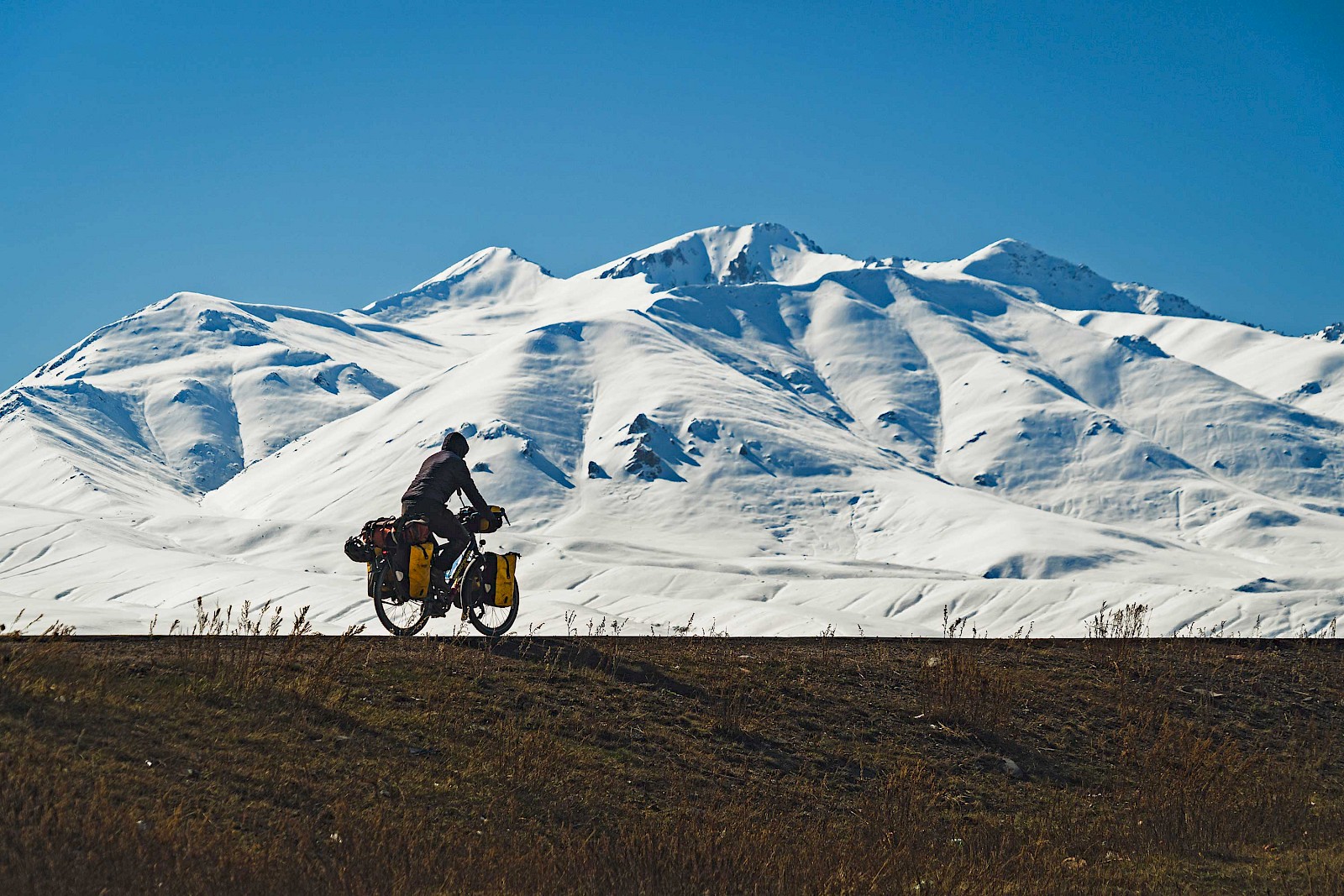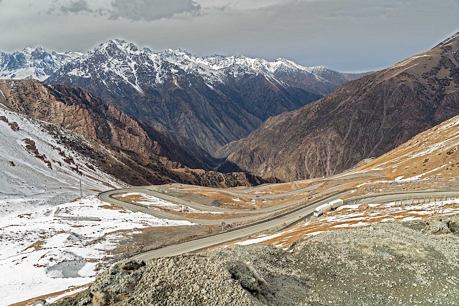 Meiner Erfahrung nach sind die Menschen umso gastfreundschaftlicher umso rauher die Natur beziehungsweise die Landschaft ist. Ein Beispiel dafür sind die kargen lebensfeindlichen Wüstenregionen in Südasien. Auf der 7-tägigen Tour von Bishkek zur Grenze Usbekistans liegen zwar keine Wüstendurchquerungen vor mir, aber kalte Höhenlagen, Schnee und Hochplateaus mit Gegenwind. Ich weiß nicht ob die Leute Mitleid mit mir haben oder interessiert sind oder beides aber ich werde mehrfach zum Abendessen oder zum Übernachten eingeladen, was ich bei den Temperaturen dankend annehme. Auch wenn die Landschaft hier sehr eindrucksvoll ist, so sind es trotzdem die Menschen mit denen ich in Kontakt komme, die mich am meisten auf dieser Reise beeindrucken. Ihre Geschichten, ihre Art zu leben, ihre Sichtweise auf die Welt. Darauf möchte ich aber in einem anderen Beitrag später umfangreich eingehen. Für diese Etappe bleibt zu sagen, dass es enorm fordernd war die ca. 550 Kilometer und 6.300 Höhenmeter unter Zeitdruck und bei diesen Temperaturen zu meistern. Für den Aufwand wurde ich doppelt belohnt und zwar mit Ausblicken die ich auf Fotos gebannt habe und Begegnungen mit Menschen, an die ich in vielen Jahren noch denken werde.