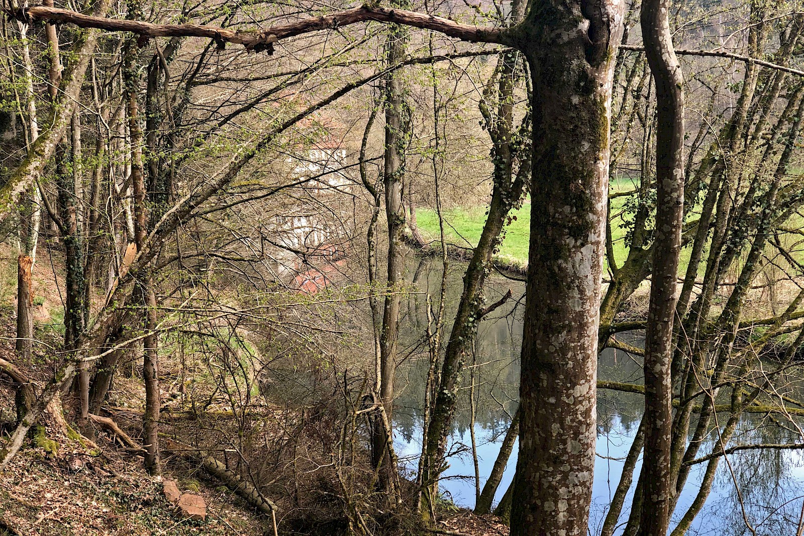 Die 35 Kilometer lange Tour entpuppte sich als unglaublich abwechslungsreich und interessant. Die noch lichte Vegetation ermöglichte Ein- und Ausblicke, die in ein paar Wochen im Blättergedicht verschwinden und dennoch ist das Frühjahr bereits spür- und sichtbar. Obwohl direkt vor der Haustür gelegen, bin ich einige völlig neue Wege gefahren und habe unbekannte und meist wunderschöne Ecken entdeckt. Pittoreskes, um nicht zu sagen Hässliches, war auch dabei, gehört einfach dazu und schärft das Bewusstsein für die schönen Dinge. Zweieinhalb Stunden später war die heimische Haustür wieder erreicht – gefühlt war ich aber ganz, ganz, ganz weit weg … Sehr frei nach Wolf Biermann: »Ich möchte am liebsten weg sein und bleibe am liebsten hier« ;-)