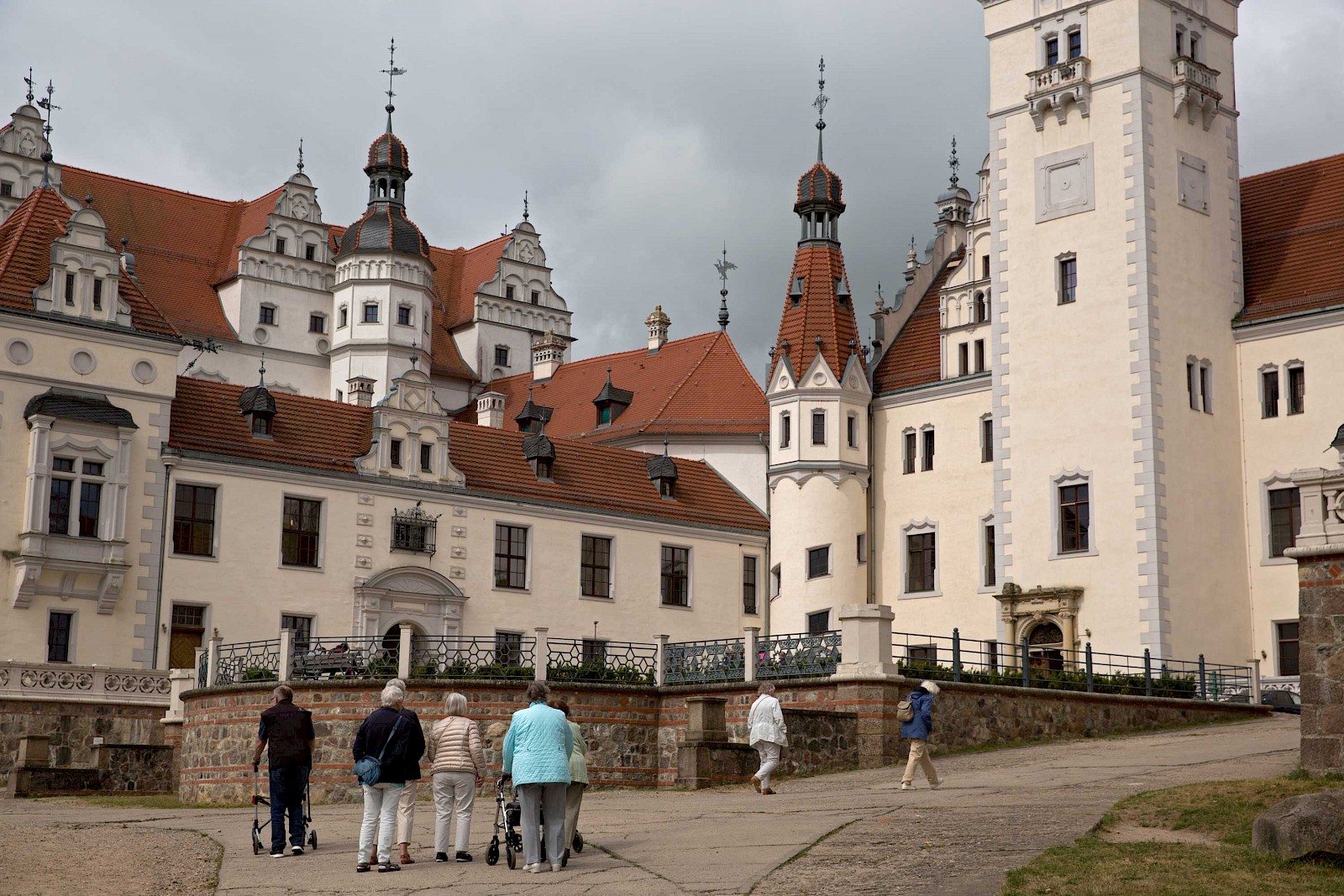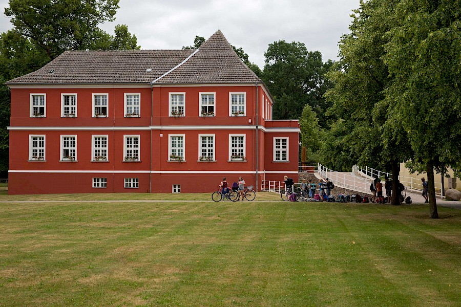 Die Wolken hingen heute noch tiefer und kompakter – schade eigentlich. Ich radelte zunächst noch auf der Uckermark-Route, um dann eine »Abkürzung« zu nehmen, die aber landschaftlich keinen Nachteil bot. Bis nach Boitzenburg und seinem imposanten Schloss zog sich die Strecke dann etwas, leider hatte die vielversprechende Gutsbäckerei noch geschlossen. Das mächtige Schloss, so mitten im Nirgendwo, ist im übrigen kein Luxusressort oder gar Seniorenresidenz, sondern überwiegend ein Jugendgruppen-Hotel!