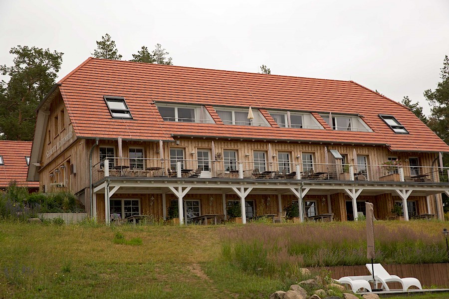 Bis zum Oberuckersee bzw. zum Hotel nochmals reinster und ungetrübter Radreisegenuss. Am Ortseingang von Warnitz ein interessant aussehender Campingplatz, als Tipp für alle Camper. Das Seehotel Huberhof (würde man eher in Bayern verorten – Stichwort »Huberbuam«) entpuppte sich als gute Wahl: gepflegt, frequentiert und mit Steg in den See – ab zum Schwimmen :-)