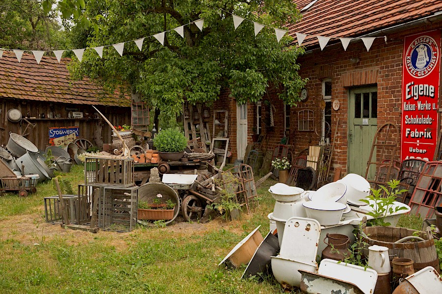 Die Strecke bis Friedrichsfelde – mit dem Heinrich-Schliemann-Museum (Stichwort Troja) – verlief über herrliche, kleine und flott zu fahrende Landstraßen. Unterwegs mehrfach nette Cafés, wie auch hier am Museum. Ich radelte zügig weiter, die Beine und die Strecke machen es möglich. Unterwegs immer wieder das Schöne (meist das vorsozialistische Erbe) und Unvermeidliche (meist das sozialistische Erbe). Immer mehr wird mir klar bzw. kann ich nachvollziehen, dass der Wiederaufbau und das viele Geld, das in den Osten geflossen ist, tatsächlich »alternativlos« war und ist.
