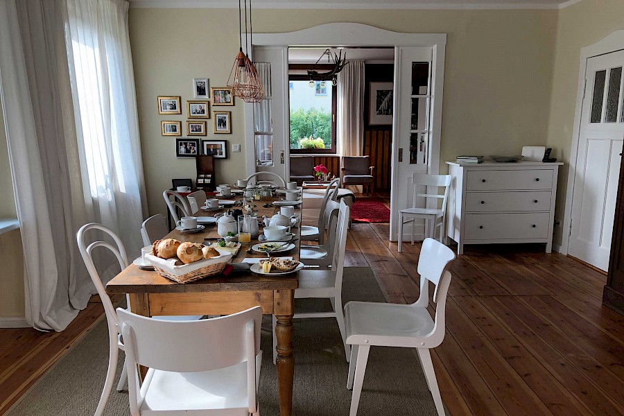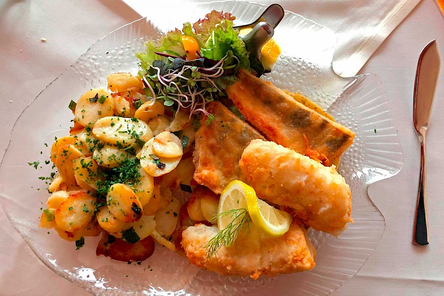 Die Nacht war gut und um acht saß ich nach einem Morgenspaziergang beim Frühstück, welches von der Auswahl überschaubar, aber von sehr guter Qualität war. Übrigens – Das ganze Arrangement, Essen, Getränke und Frühstück, hat 92 EUR gekostet – also jeden Cent wert.