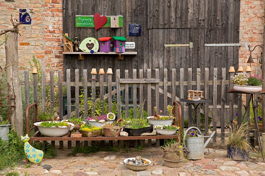 Dennoch eine gute Entscheidung, denn erst nach 40 (!) km gab es in Steinhöfel eine Gelegenheit einzukehren. Dort kann man sehr privat auf der Wohnzimmer-artigen Hinterhof-Terrasse Platz nehmen. Gesellschaft leistete die beleibte Wirtin persönlich. Bis dahin war ich viel über schnurgerade Landstraßen aber auch unglaublich schöne Radwege gefahren. Inzwischen befand ich mich auf dem offiziellen Radfernwanderweg Berlin/Usedom, und nach Steinhöfel nehmen die Einkehrmöglichkeiten sprunghaft zu ;-)