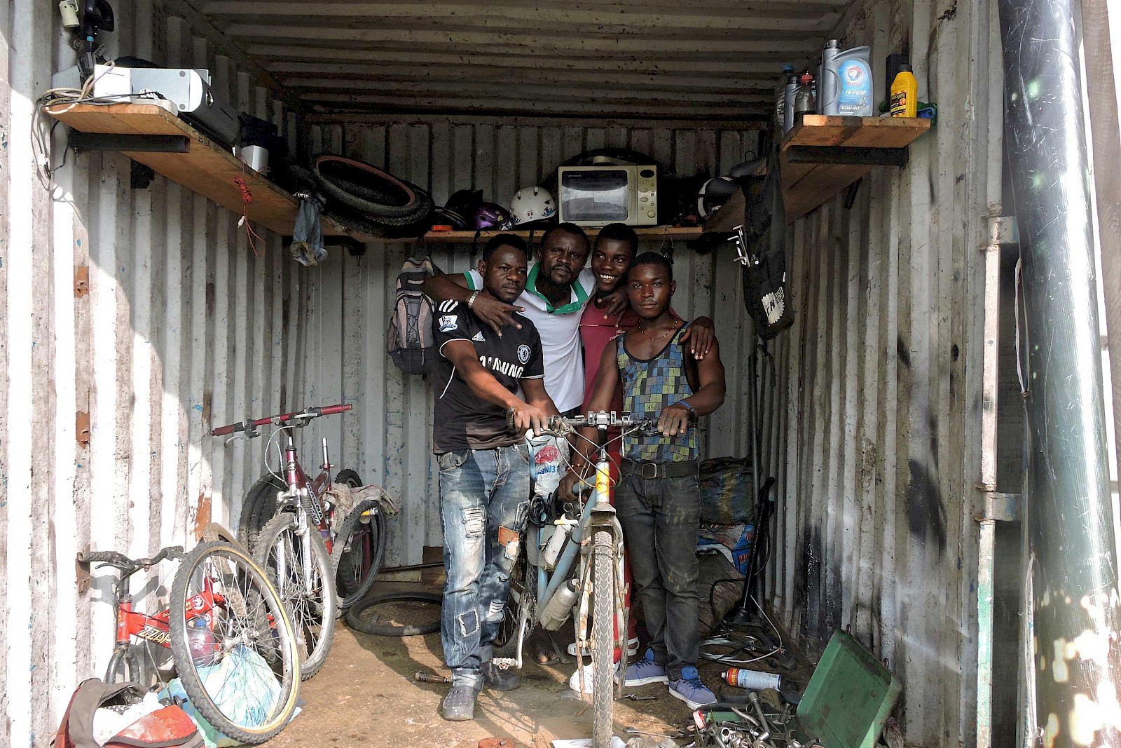 Danach kamen wieder eher unproblematische Länder, Kamerun und Gabun. Auch Congo Brazzaville ist problemlos mit guten neuen Straßen. Durch Kongo Kinshasa hatte ich mir die kürzeste Strecke gewählt, von Kinshasa nach Angola, das waren etwa 240 Kilometer. Am Anfang war es noch gut geteert, danach konnte man kaum noch von Straße sprechen.Trotz der Armut habe ich auch hier sehr nette und gastfreundliche Leute kennengelernt.