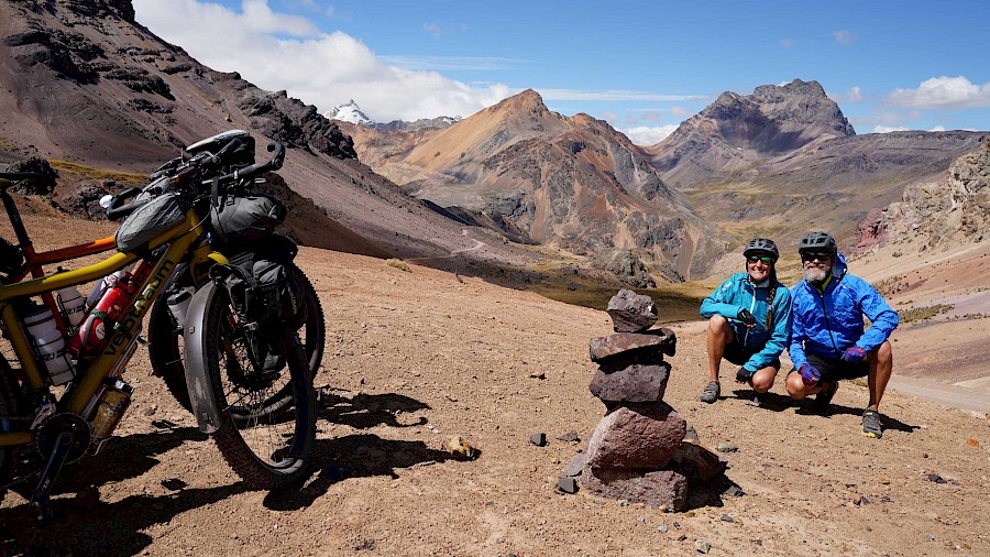 Die Route bringt uns als „Einstieg“ zu großen Teilen entlang der „Peru Divide“ bis in die Stadt Arequipa. Diese spektakuläre Strecke wurde von Neil und Harriet Pike (andesbybike.com) zusammengestellt und führt auf staubigen Schotterpisten und über viele hohe Pässe entlang der transkontinentalen Wasserscheide der Anden. „El Silencio“ – „Die Stille“, so nennen die Peruaner jene entlegenen Hochgebirgslandschaften, in denen wir die nächsten Wochen unterwegs sein werden. Es ist eine weltentrückte, raue Gegend mit einer unbeschreiblichen Schönheit, die uns alles abfordert. Die Tage sind geprägt von teils miserablen Pisten und unzähligen Pässen, die uns in Höhen von knapp 5.000 Meter bringen. Nur selten fällt unser Höhenmesser unter die 4.000 Meter-Marke, eine perfekte Akklimatisation ist hier Pflicht. Wir haben uns langsam an die extreme Höhe herangetastet und sind gut angepasst. Nichtsdestotrotz kommen wir nur langsam voran, unsere Kilometerbilanz ist bescheiden. Trotz der Strapazen genießen wir die einsamen Etappen und grandiosen Lagerplätze, aber auch die kleinen, unscheinbaren Dörfer und Städte, durch die wir radeln. Nichts, was man üblicherweise auf der Must-See-Liste eines Peru-Reisenden findet. Und genau das reizt uns. Wir erleben das Land so, wie es ist. Unverblümt, ohne Maske und ohne inszenierter Idylle. Dafür mit sehr viel Authentizität und mit voller Wucht.