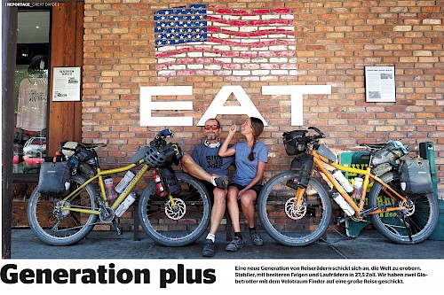 Wie Stefan bereits geschrieben hat, fühlt sich der Finder (im Vergleich zum “normalen” Reiserad) eher sportlich an und erlaubt je nach Ausstattung auch Fahrten abseits guter Straßen und Pisten. Und das mit erstaunlichem Komfort (Voraussetzung ist der richtige Luftdruck in den Plus-Reifen). Ich denke es kommt auch ganz darauf an, wie du dir das Bike aufbauen lässt: Welcher Lenker, Federgabel ja / nein, Höhe Vorbau, Reifenwahl … Solltest du beim MTB eher ein vollgefedertes All-Mountain gewöhnt sein, dann fühlt sich der Finder natürlich gaaanz anders an. Bist du ein Hardtail gewöhnt, kommst du je nach Konfiguration der Sache sicherich näher. Die Steifigkeit ohne Gepäck ist aber nicht außer Acht zu lassen. Das Rad ist ja eher für beladene Einsätze konzipiert, was sich eben auf das Fahrverhalten auswirkt solltest du mal ohne Taschen unterwegs sein. Ich rede hier aber von ruppigen Trails mit Wurzeln und Steinen. Auf “normalen” Schotterstraßen, Pisten und Asphalt ist das eher nicht das Problem.