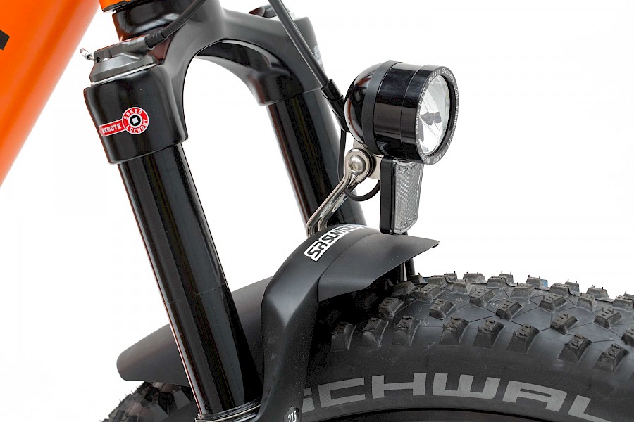 Darüber hinaus ist eine leistungsfähige Federsattelstütze mit 50 bis 70 Millimeter Federweg wärmsten zu empfehlen und bergab gilt für so ein Gefährt mehr denn je: Hirn anschalten und das persönliche Fahrkönnen realistisch einschätzen …