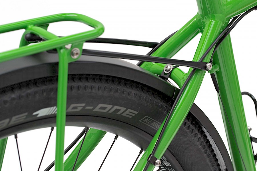 G-One | Thunder-Burt – Von Schwalbe eingetroffen sind der »G-One« und der »Thunder-Burt« im Format 57-584. Der G-One ist ein robuster Allroundreifen und wiegt dabei nur 600 Gramm, nochmals leichter und ungemein schnell ist der Thunder-Burt mit nur 540 Gramm Gewicht. Beide Reifen sind für den gemischten Einsatz (Straße und Gravel) im Finder und Speedster vorgesehen.