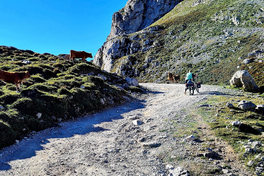 »Der zweite Teil folgte dann ab Anfang Oktober und es ging von Bilbao aus zunächst durch das grüne Kantabrien weiter an der beeindruckenden Nordküste Spaniens. Danach radelten wir durch den Nationalpark Picos de Europa, teilweise auf abenteuerlichen Strecken mit bis zu mehr als 3-stündigen Schiebepassagen. Weiter ging es durch die Extramadura über Salamanca bis nach Sevilla in Andalusien, die meiste Zeit dem Pilgerweg der sogenannten Ruta de la Plata folgend. Von Sevilla aus war es nicht mehr weit bis zum Atlantik und als wir in Cadiz angekommen sind, hatten wir einmal Spanien von Nord nach Süd durchquert.Über Gibraltar gelangten wir dann am Mittelmeer entlang schlussendlich an unser Ziel in Malaga.«