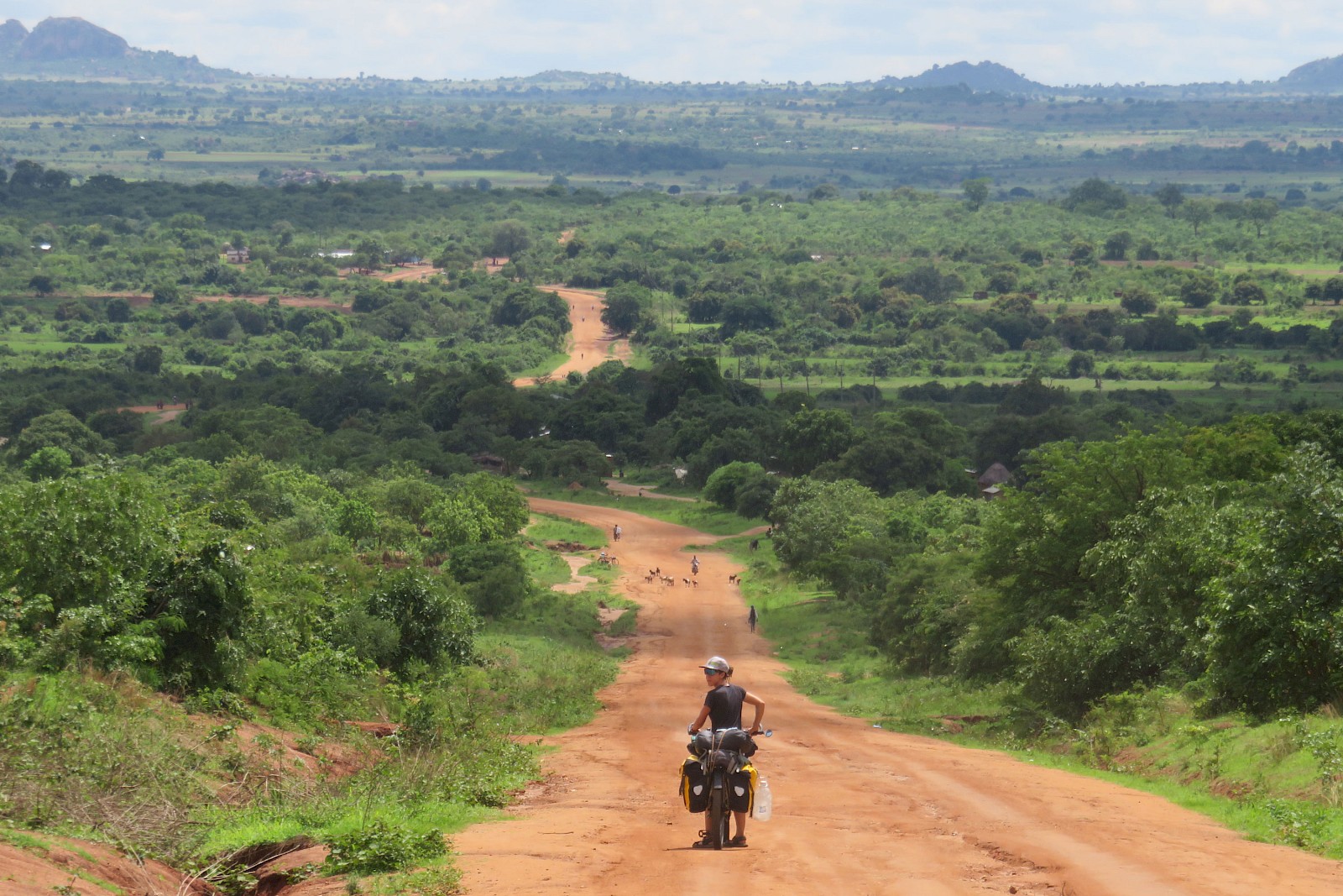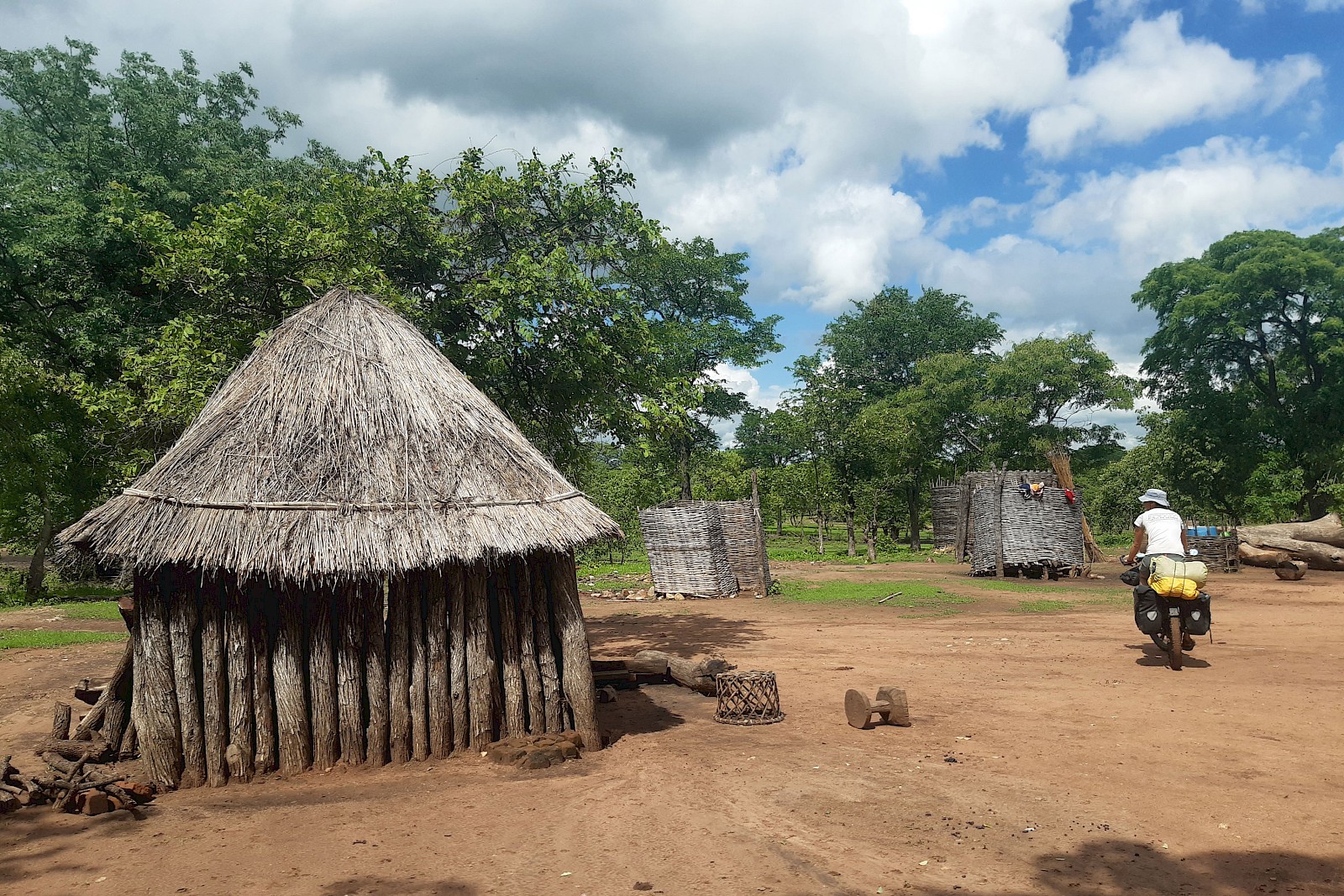 Im bereits erwähnten endlosen Auf und Ab ging es dann im zweiten Teil der Strecke zwischen kleinen Dörfern, unter den ungläubigen Blicken und erfreuten Lachern der Einheimischen und zuweilen in Begleitung des ein oder anderen Radlers zwischen uralten Baobabs dahin und wir durften lernen, dass die zwar sehr robusten jedoch minimalistisch ausgestatteten Räder der Locals mangels Gangschaltung meist bergauf geschoben, oben nicht selten aufgepumpt und anschließend in halsbrecherischem Tempo und blindem Vertrauen in die Rücktrittbremse bergab gefahren werden. Da loben wir uns die beiden unabhängig voneinander wirkenden Hydrauliksysteme, die wir mit je einem Finger verlässlich unter Kontrolle haben.