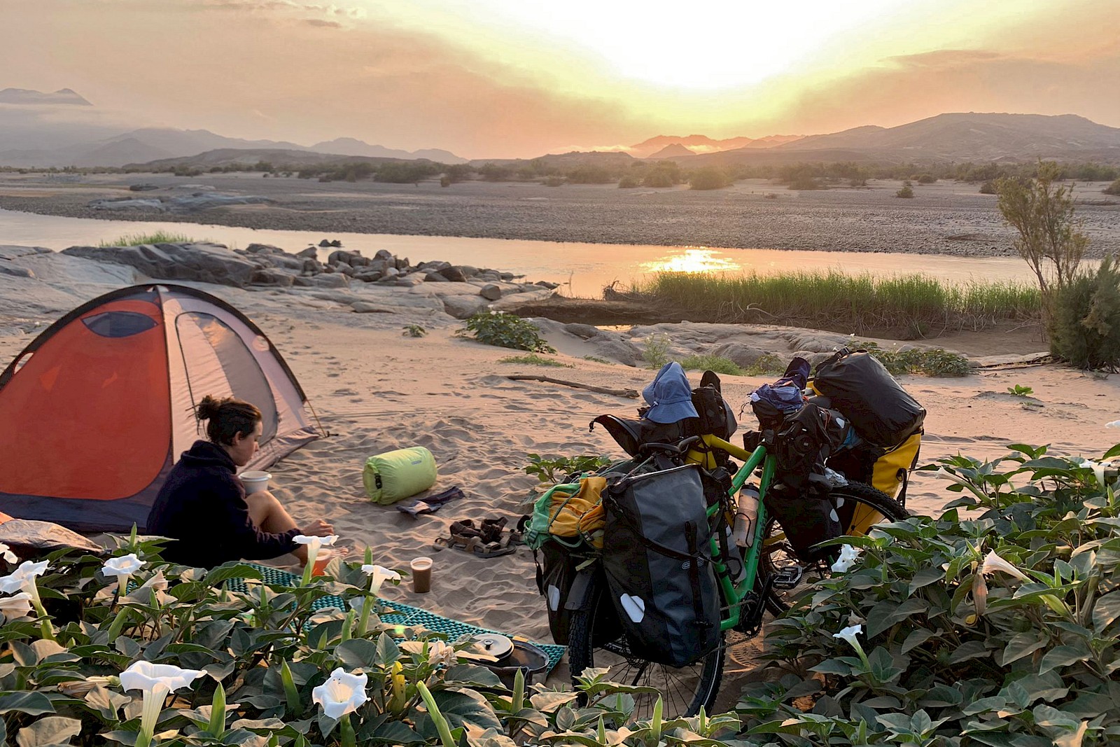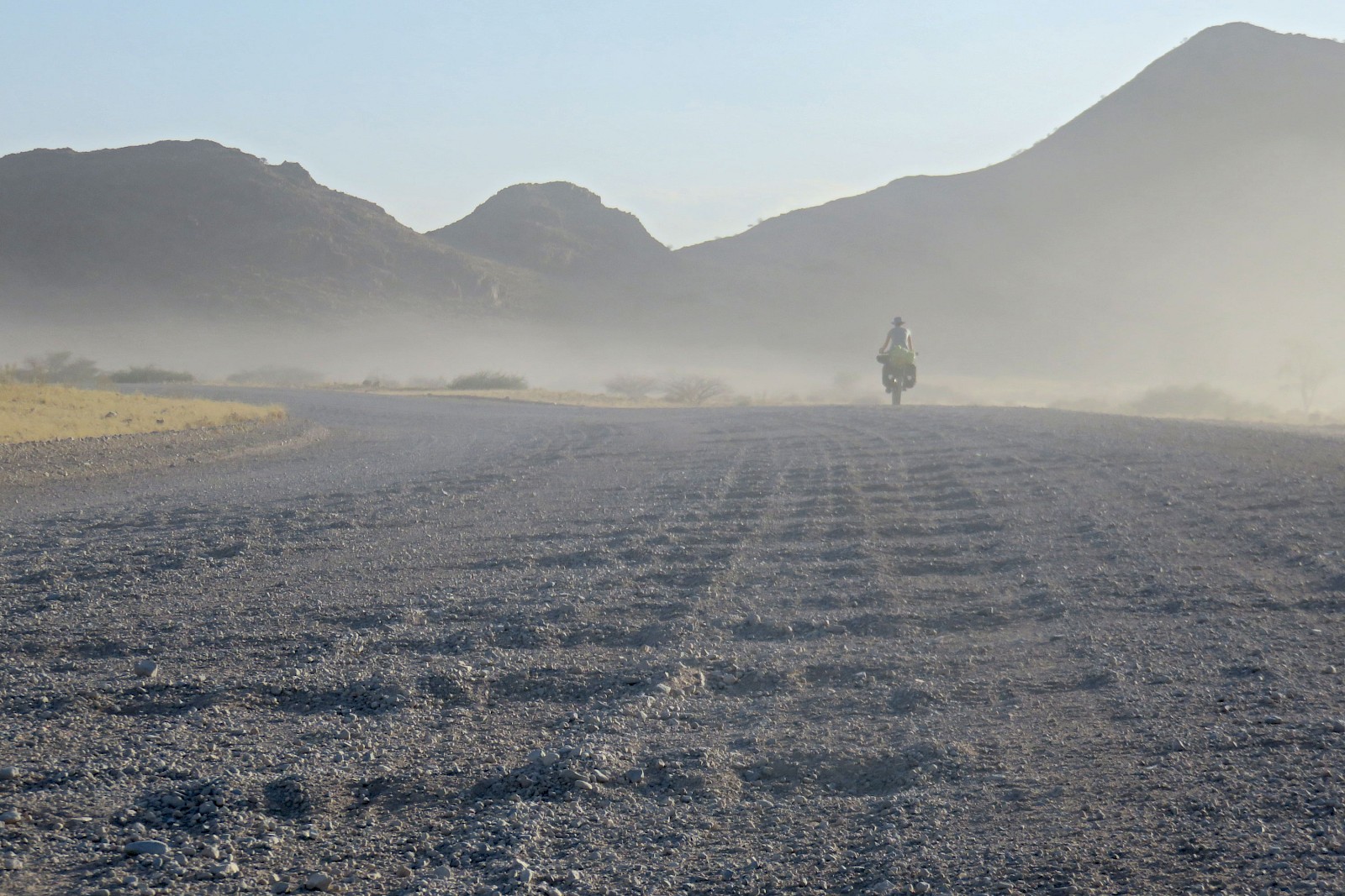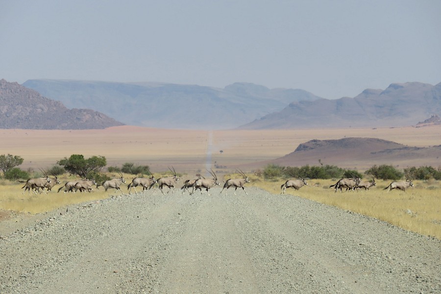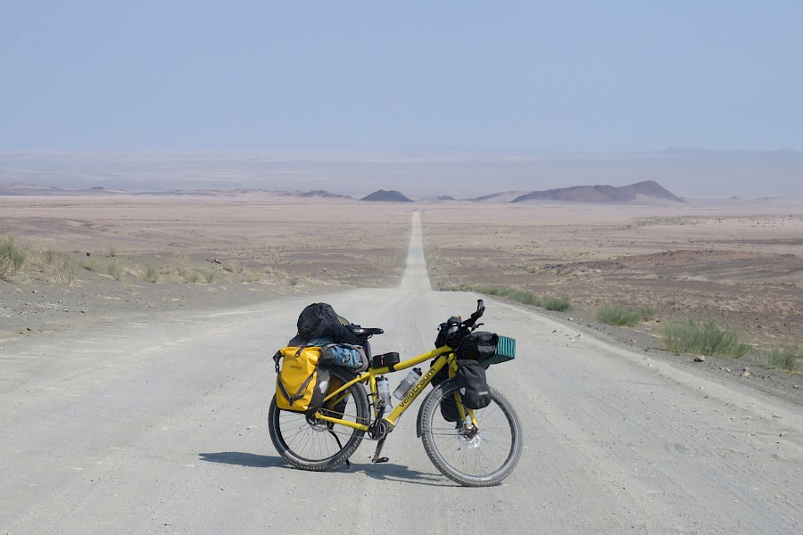 Namibia, das war Sand, Staub und Hitze in allen Farben und Formen. Das Radeln durch unendliche Weiten, neben uns hergaloppierende Oryx- und Springbockherden, zum Abendessen vorbeischauende Bergzebras, jede Menge Sterne, Sonnenauf- und -untergänge und herzerwärmende Begegnungen mit empathischen Touristen wie auch Einheimischen haben uns im vergangenen Monat gezeigt, warum sich Radreisen lohnt. Die von einem Tag auf den anderen in die Höhe schießenden Tagestemperaturen haben uns und eine von zwei Pinions zwar ordentlich zum Schwitzen gebracht – im Gegensatz zu unserem anhaltenden Flüssigkeitsverlust blieb es bei der Schaltung aber lediglich bei ein paar unbedenklichen Tropfen Öl.