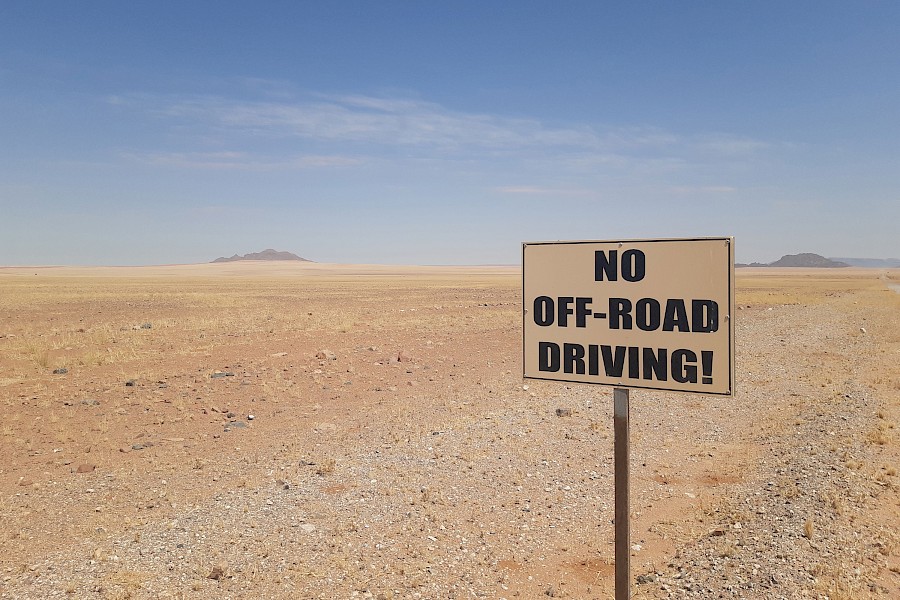 Wie es dazu kommen konnte? Die Wüste hat uns auf dem falschen Fuß erwischt – eine zu erwartende 230 Kilometer lange Durststrecke traf auf unsere bereits angerauhte Frustrationstoleranz. Nach einer wellblechartig gestauchten Straße, die wir über mehrere Tage in sengender Hitze und der gelegentlichen Staubpanier vorbeibretternder Safaritouristen lediglich mit heißen 5 km/h Durchschnittsgeschwindigkeit bestreiten konnten, sehnten wir uns nun nach kühler Meeresluft und guten Straßen. Tja, da kam die Mitfahrgelegenheit gerade recht …