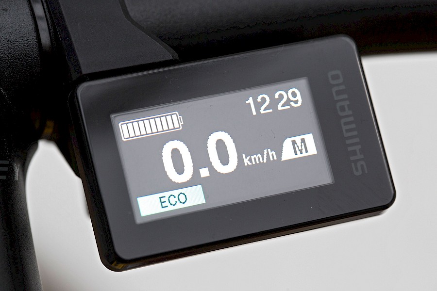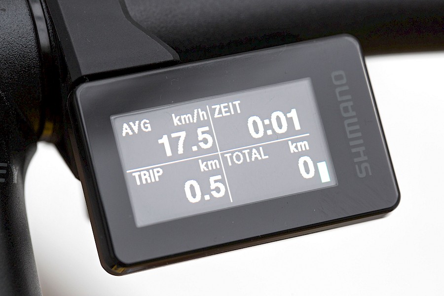 Auf dem Startbildschirm findet sich nun löblicherweise die Uhrzeit. Dafür ist die Darstellung der Motorleistung nicht mehr ganz so aussagekräftig wie zuvor. Leider hat es Shimano wieder nicht geschafft, das völlig überflüssige »M« (steht für manuelle Schaltung) aus dem Startbildschirm zu entfernen. Deutlich bedienungsfreundlicher lassen sich nun die weiteren Informationen aufrufen, die auf bis zu vier statt bisher acht Ebenen angeordnet sind.