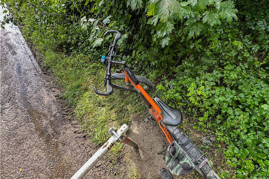 Doch vielleicht ist auch alles ganz anders. Wahrscheinlich wurde für die glücklichen Straßenbauarbeiter bereits die Ein-Tag-Woche eingeführt – Stichwort work-LIFE-balance. Also am Montag den Bagger und den Bauwagen hingestellt und dann »Dolce far niente«. Den maroden Asphalt überlässt man für den Rest der Woche den Radfahrern und der hiesigen Fauna. So kommen leidgeplagte Alltagsradler mal für eine kurze Zeit in den Genuss eines XXL-Radwegs. Schließlich ist auch eine marode Landstraße um Welten besser als die hiesigen Radwege, denn ein Straßen-begleitender Radweg wird auch bei dieser Sanierung nicht gebaut. Quasi eine Win-Win-Situation auf Zeit ;-)