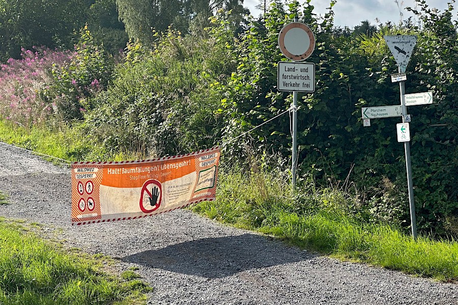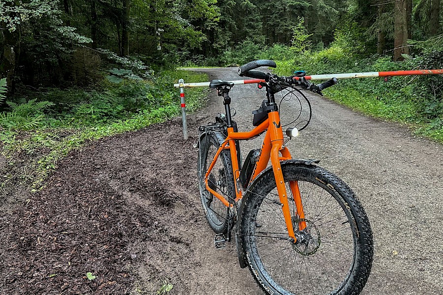 Zwischen Möttlingen und Unterhaugstett wird endlich die desolate Landstraße L343 saniert, und dafür ist diese wichtige Verbindungsstraße bereits seit einer Woche gesperrt. Um den Schleichverkehr über Forstwege zu verhindern, wurden dankenswerter Weise die Schranken geschlossen.Allerdings hat man die Radfahrer gleich mehr oder weniger mit ausgesperrt … – Freilich mit einem Finder kommt man da durch ;-)