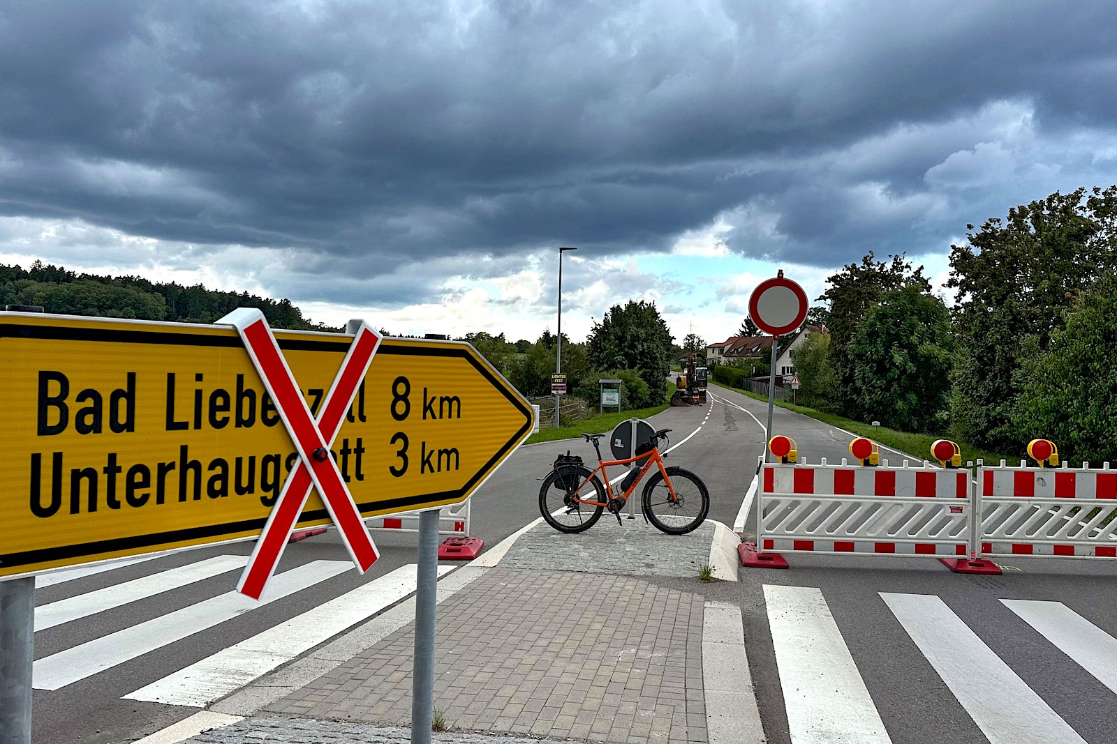 So vor mich hinträumend ist das Ende der Ausbaustrecke, respektive Straßensperrung, ratzfatz erreicht, und gelassen in mich hinein lächelnd verlasse ich die angenehme Tagträumerei.