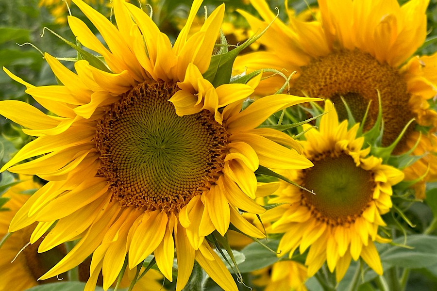 Auf meinem Heimweg lächelte mir dieses Sonnenblumenfeld zu und innerlich lächelte ich so gleich zurück. Dabei wunderte ich mich, wo diese Pracht so plötzlich hergekommen ist. Denn am Morgen bzw. die Tage davor war da nichts, bzw. ich im Tunnelmodus achtlos daran vorbei geradelt …