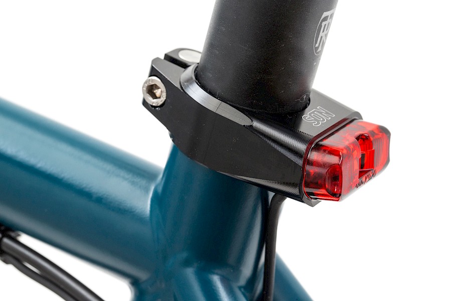 Bei der Recherche auf der SON-Homepage zum bisherigen Rücklicht, das an der Sattelstütze befestigt wird, war da auch das SON-Rücklicht-Sattelschelle zu sehen – was für eine Überraschung. Auf die Anfrage per Mail, ob das Ding schon verfügbar sei, kam so eine typische Antwort aus dem Hause SON: »Guten Morgen Stefan, die Rücklichter sind offiziell noch nicht lieferbar, da es noch keine Montageanleitungen gibt. Da ich aber davon ausgehe, dass deine Mitarbeiter die Teile auch ohne Anleitung montieren können, bekommt ihr weltexklusiv als erster Fahrradhersteller diese Rücklichter. Grüße aus Tübingen«. Allein schon für diese Art der lösungsorientierten Partnerschaft lieben wir die Tübinger ;-)