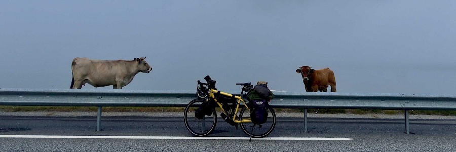 Die dritte Reise mit meinem geliebten zinkgelben [RAL1018] Velotraum Speedster soll durch Westeuropa gehen. So radle ich also im Mai 2023 von Bern los. Via Genfersee geht es nach Frankreich. Mein ständiger Begleiter: nachmittagliche Gewitter- und Hagelstürme. Im munteren Zickzack und mit Abstechern nach Korsika und Mallorca erreiche ich im Hochsommer die Pyrenäen. Mal via die famosen Tour-de-France-Pässen, mal auf einsamen Bergsträßchen arbeite ich mich langsam zu den Picos de Europa vor. Und dann weiter nach Portugal.Trotz teilweise ziemlich ruppig-steinigen Bergstrassen macht mein Speedster wie immer alles freudig mit und muckt fast nie rum. Ja, wir sind definitiv ein gutes Team.