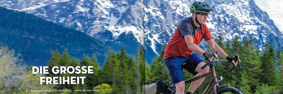 Unter dem Titel »Die große Freiheit« versammelte der Redakteur Jochen Donner acht astreine, aber sehr unterschiedliche Reiseräder. Unter den Testrädern waren alle drei Schaltungsprinzipien vertreten (Kettenschaltung, Rohloff, Pinion), mit Rahmen aus Stahl, Aluminium oder Titan. Die Preisspanne reichte vom 2.799,00 (Versender) bis 8.565,00 EUR, wobei unser SP2 das zweitgünstigste Angebot darstellte, trotz einer sehr hochwertigen Ausstattung.