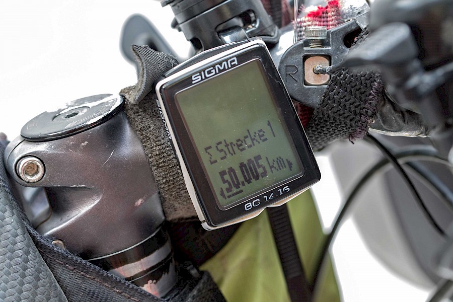 Wenngleich wir schon einige Weltumradler erfolgreich ausstatten durften, ist es immer wieder eine wunderbare und hochwillkommnen Gelegenheit, den Menschen und ihrem Material am Ende einer so langen und oft spektakulären Radreise begegnen zu dürfen. Zumal nur wenige Kilometer zuvor der Kilometerzähler an Steffis Rad auf 50.000 Kilometer gesprungen war – einfach nur großartig!