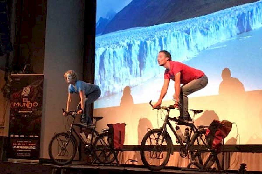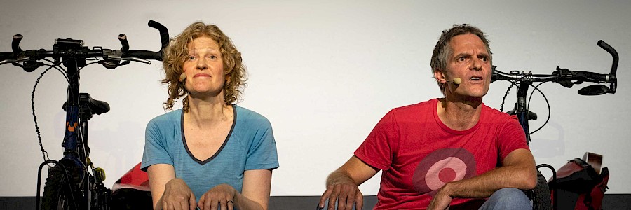 Auf der Eurobike in Frankfurt präsentierte das Kabarett-Duo »Reisegruppe Ehrenfeld« Ausschnitte aus ihrem aktuellen Programm »Das Ziel ist auch nicht die Lösung – Ein Paar packt aus«. Und da auch Velotraum auf der Messe vertreten war, lag es nahe, Kontakt aufzunehmen, zumal wir für solche »Zusatzverwertungen« unserer Fahrräder immer sehr interessiert und dankbar sind.