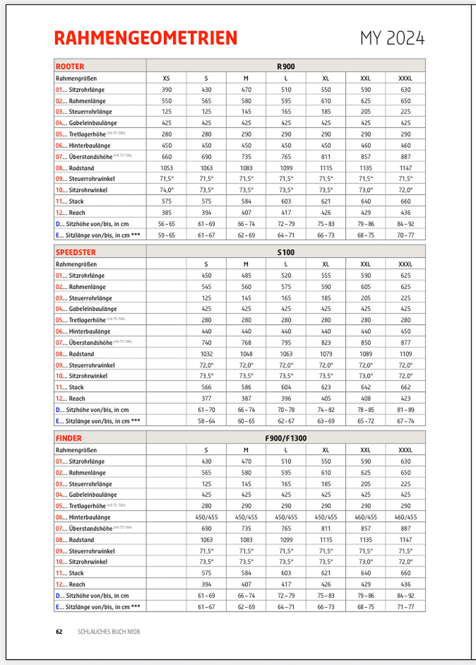 Hallo Hr. Stiener, endlich ist es offiziell, die neuen Rahmen können inspiziert werden. Das schlaue Buch 8 ist ja schon ein paar Tage in eurem Download verfügbar und hat mich doch überrascht, leider nicht nur positiv… ist man das umfangreiche Portfolio gewohnt, erscheinen die wenigen neuen Modelle, die die alten Rahmen wohl komplett ersetzen sollen sehr knapp bemessen. Hoffentlich bekommt ihr noch alle passend aufs Rad ;-)