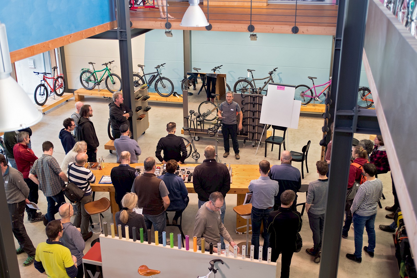 Da hat es natürlich optimal gepasst, dass wir im Vorfeld mehrere Großprojekte zum Abschluss gebracht hatten, wie zum Beispiel die neue Homepage, den Umbau unseres Portfolios in »Vier Fahrradwelten« und die Relaunch des ERP-Systems samt Neukonfiguration des 2018er Programms. Wir hatten also relevante Schulungsinhalte en masse …