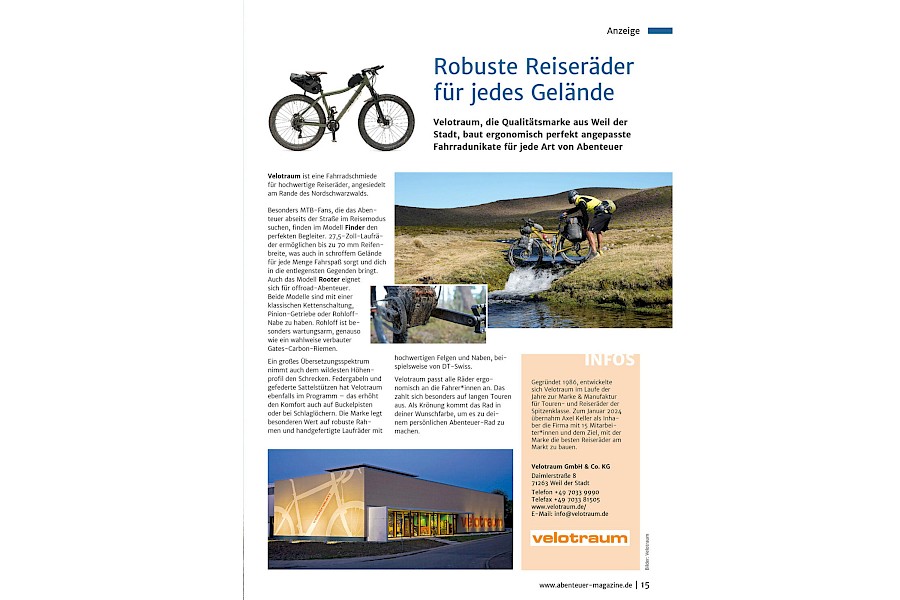 Besonders für Offroad-Fans lohnt sich der Blick in die aktuelle Ausgabe von Abenteuer Mountainbike, erschienen bei Röhmmedien. Es gibt inspirierende Reisereportagen, MTB-Fahrtechnik- und -Veranstaltungstipps. Auf Seite 15 haben wir Informationen zu unserem Finder in einer Anzeige platziert.