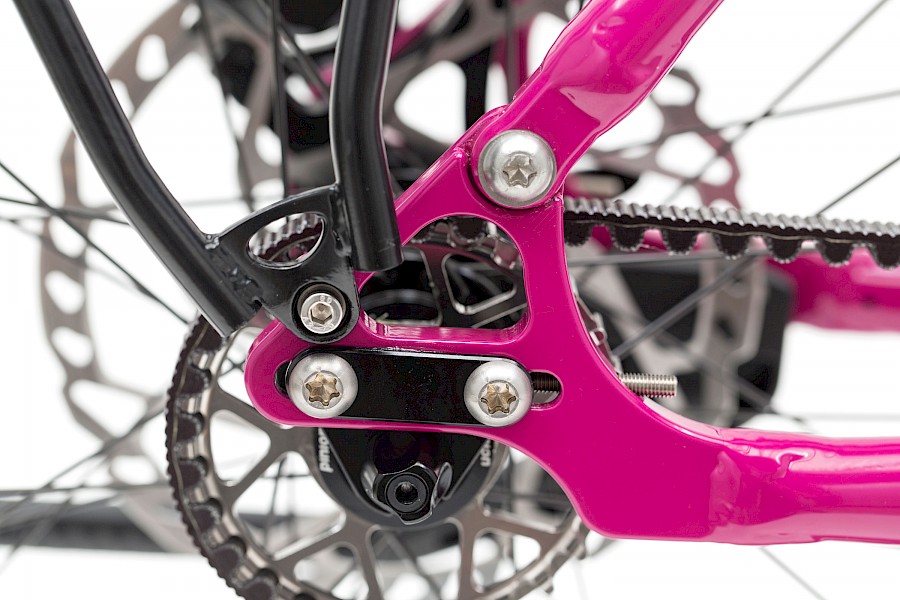 Nicht angetastet haben wir die Rahmengeometrie, die Dimensionierung der Rahmenrohre, die Aufnahme fürs Piniongetriebe und unsere speziellen Ausfallenden. Jedes dieser Details hat sich sowohl in der Erstmontage, der Wartung und natürlich im Alltag unserer Kunden bewährt.